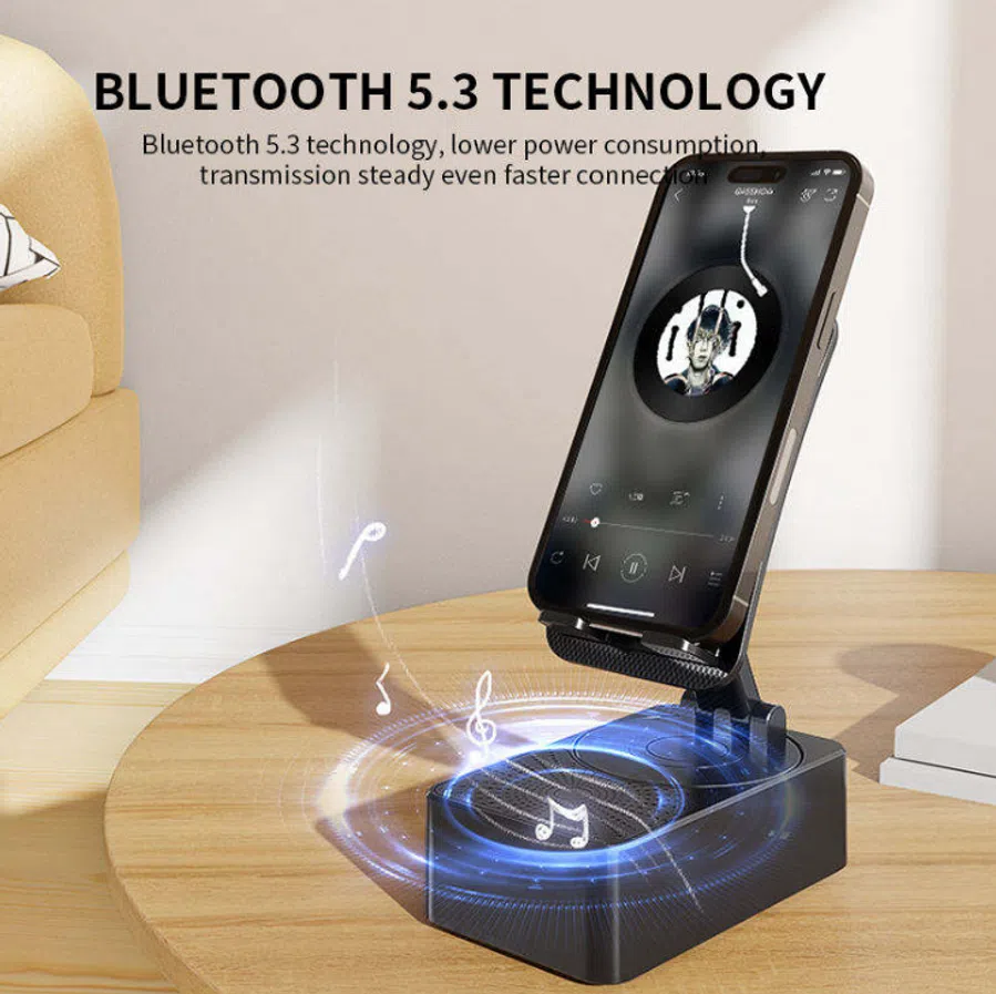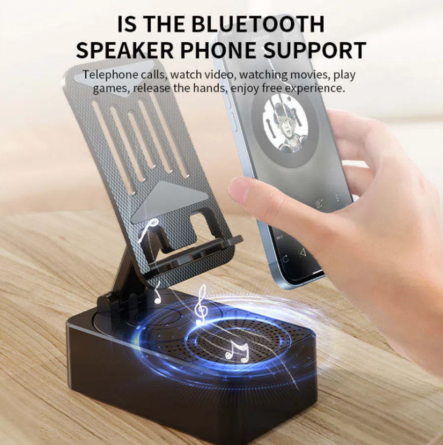 ব্লুটুথ ওয়্যারলেস স্পিকার+মোবাইল স্ট্যান্ড+পাওয়ার ব্যাংক– ১ ডিভাইসে তিনটি সুবিধা!