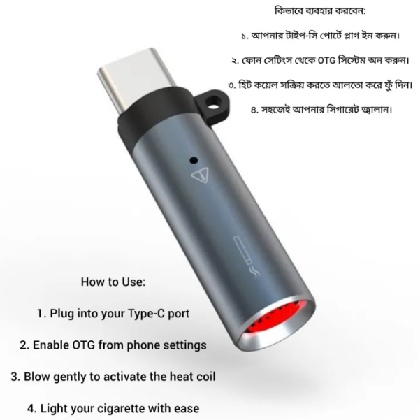 ✅ প্লাগ এন্ড প্লে – মোবাইলের টাইপ-সি পোর্টে লাগিয়ে ফু দিলেই আগুন জ্বলে উঠবে।